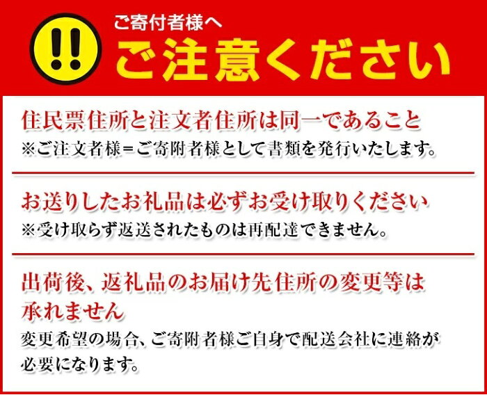 【注文内容確認画面の「注文者情報」を寄附者の住民票情報とみなします】 ・必ず氏名・住所が住民票情報と一致するかご確認ください。