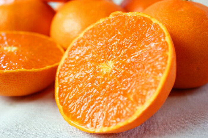 見た目よりズッシリとした重みの果肉は非常にジューシーで甘く、ほどよい酸味もありオレンジのような濃厚な味が楽しめます。
