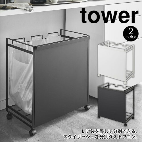 【あす楽&送料無料&ポイント10倍】タワー ゴミ箱 目隠し分別ダストワゴン 3分別 tower 山崎実業 タワーシリーズ ゴミ箱 おしゃれ タワー キッチン ごみ箱 分別 目隠し レジ袋 キャスター 瓶 缶 ペットボトル ダストボックス ダストワゴン ごみ袋 目隠し ゴミ分別 台所