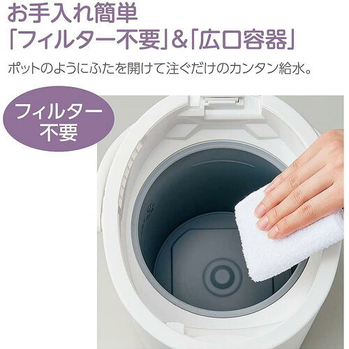 商品概要象印 加湿器 スチーム EE-RR35 2.2L タイマー 大容量 お手入れ簡単 フィルターなし おしゃれ 6〜10畳 概要 ・清潔な蒸気のスチーム式 ・お手入れ簡単 「フィルター不要」&「広口容器」 ・トリプル安心設計「チャイルドロック」「ふた開閉ロック」「転倒湯もれ防止構造」 【仕様】 ・消費電力:湯沸かし立ちあげ時 985W 加湿時 305W ・タンク容量:2.2L ・定格加湿能力:350mL/h ・適用床面積の目安:木造和室6畳まで、集合住宅及びプレハブ洋室10畳まで ・連続加湿時間:強連続約6時間、弱連続約27時間 ・外形寸法 幅×奥行×高さ:24cm×26cm×27.5cm ・本体質量:2.3kg 商品詳細についてのお問い合わせは下記メーカーにお問い合わせください。