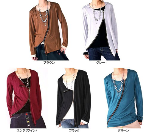 カットソー パーカー 【送料無料】アシメダブルジップカットソー メンズ レディース/A062 ブラック黒 グレー ワイン ブラウン グリーン カットソー 【ネコポス発送】