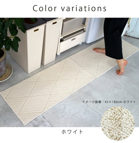 ▼ ▼ 商品詳細 ▼ ▼ ・サイズ:45×75cm ・素材:ポリエステル45%、綿34%、麻17%、その他4% ・パイル長:約6.5/5mm ・カラー:ホワイト ・生産:日本 ・機能:ウォッシャブル(洗濯機OK:洗濯ネット使用)、 防ダニ、滑り止め、F☆