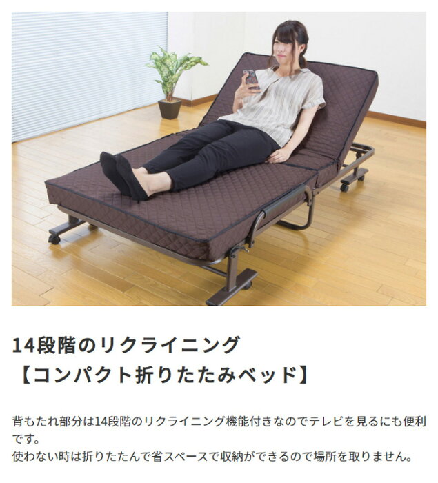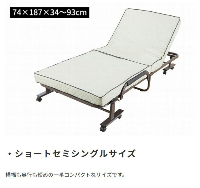 14段階リクライニング キルティングマットレス 折りたたみベッド ショートセミシングル コンパクト ショート丈 折り畳みベッド コンパクト キャスター 簡易ベッド 一人暮らし ワンルーム 仮眠 省スペース おしゃれ 寝室 来客 たたみベッド ベット ウレタン 完成品 小さめ