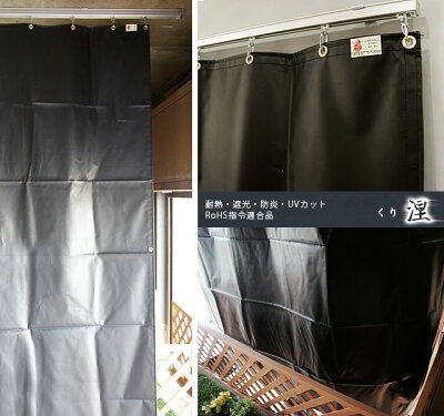 ビニールカーテン防炎 遮光 耐熱 UVカット 0.55mm厚 幅541〜630cm 丈101〜150cm ビニールシート 養生シート テント 蒸気養生シート 間仕切 ブラック RoHS2対応品 サイズオーダー 【FT15】 涅 くり JQ