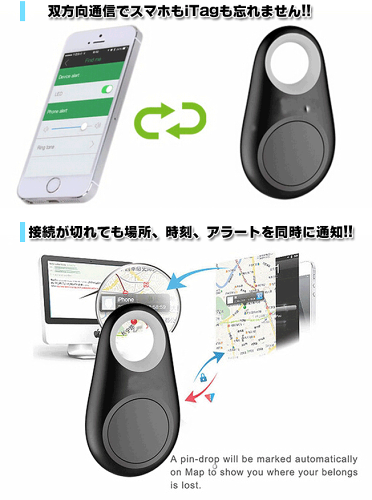 キーファインダー iTAG 商品説明 ● Bluetoothバージョン:ブルートゥース4.0 ● 互換性のある機種:ブルートゥース4.0スマートフォン(Andriod 4.3バージョン)とiPhone4S/5/5S/5C/6/6Plus/7/7Plus、iPad/mini/Air、iPod iTouch/5、iPad 3/4/5とAndriod携帯 ● 動作距離:25 m ● iPhone、iPadとiPod touchのデュアルファンクションキーファインダーとワイヤレスカメラリモートです。
