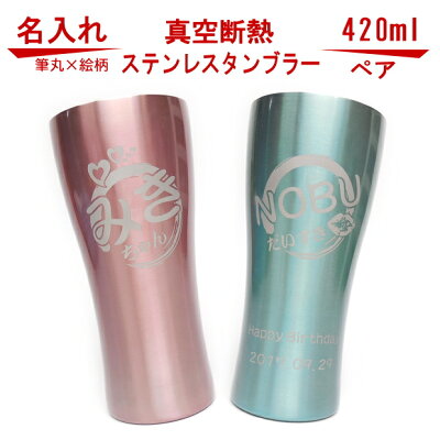 結婚祝い 父の日 名入れ グラス カラフル カラー 筆丸 真空断熱ステンレスタンブラー420ml ペアセット【ホワイトデー 結婚祝い ギフトセット 誕生日プレゼント 男性 女性 カップル 女友達 妻 夫 彼氏 彼女 還暦祝い 退職祝い ビール 食器 保冷保温・魔法瓶構造・おしゃれ】